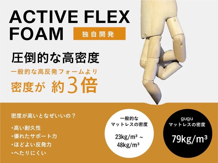 通気性にこだわったgugu独自開発のアクティブ・フレックス・フォーム・マットレスは、熱を上手に逃すことで内部温度を下げ、最適な温度コントロールを補助。心地よい睡眠空間を実感できます。
