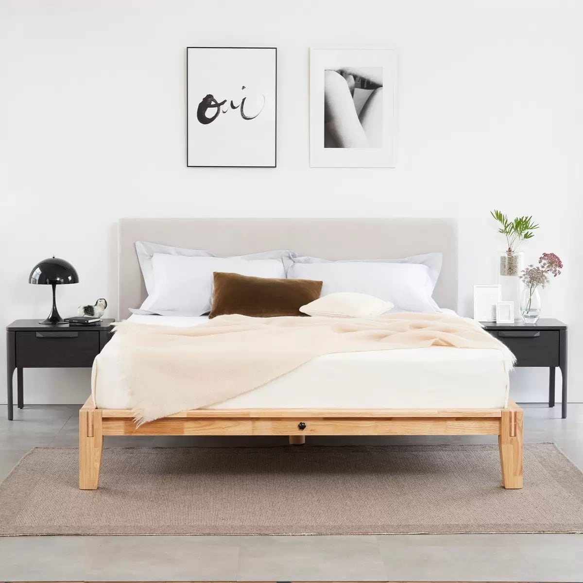 グーグーベッドフレームセット セミダブル(カラー:ナチュラル ヘッドボード:ベージュ) gugu BED FRAME SET SEMI-D (Color: Natural, Headboard: Beige)