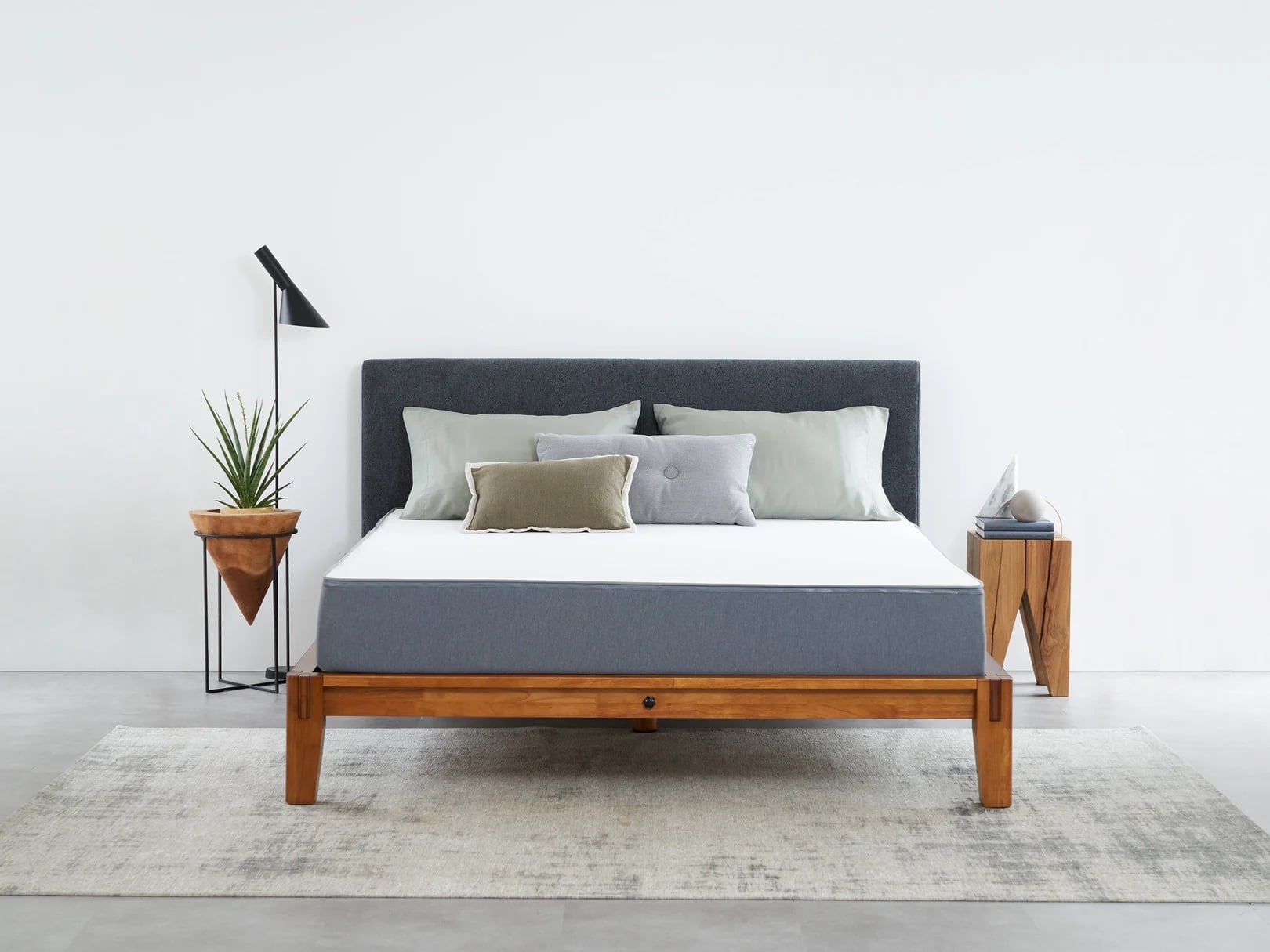 フレームの構造は、日本の伝統建築の「組木」からインスパイアされています。木材同士がお互いを支え合いながら揺れや圧力を受け流すことでとても安定した強度を保ちます。また、金属をほぼ使っていないため、劣化しにくいというメリットも。もし劣化や破損があってもパーツのみの交換が可能です。まさに「いいものを長く使う」ための職人の知恵と技術がつまった、サステナブルなベッドフレーム。ぜひ愛着を持って長く使ってあげてください。
