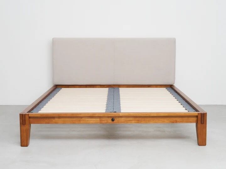 フレームの構造は、日本の伝統建築の「組木」からインスパイアされています。木材同士がお互いを支え合いながら揺れや圧力を受け流すことでとても安定した強度を保ちます。また、金属をほぼ使っていないため、劣化しにくいというメリットも。もし劣化や破損があってもパーツのみの交換が可能です。まさに「いいものを長く使う」ための職人の知恵と技術がつまった、サステナブルなベッドフレーム。ぜひ愛着を持って長く使ってあげてください。