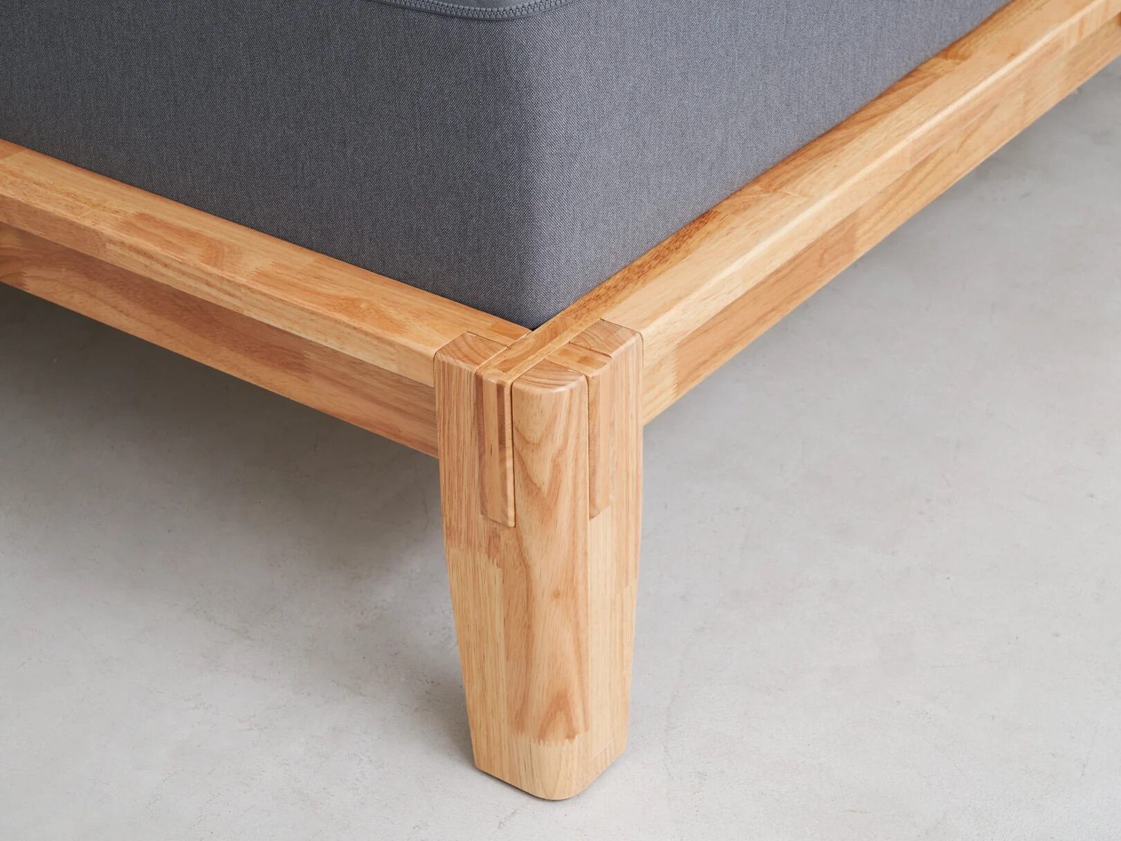 フレームの構造は、日本の伝統建築の「組木」からインスパイアされています。木材同士がお互いを支え合いながら揺れや圧力を受け流すことでとても安定した強度を保ちます。また、金属をほぼ使っていないため、劣化しにくいというメリットも。もし劣化や破損があってもパーツのみの交換が可能です。まさに「いいものを長く使う」ための職人の知恵と技術がつまった、サステナブルなベッドフレーム。ぜひ愛着を持って長く使ってあげてください。