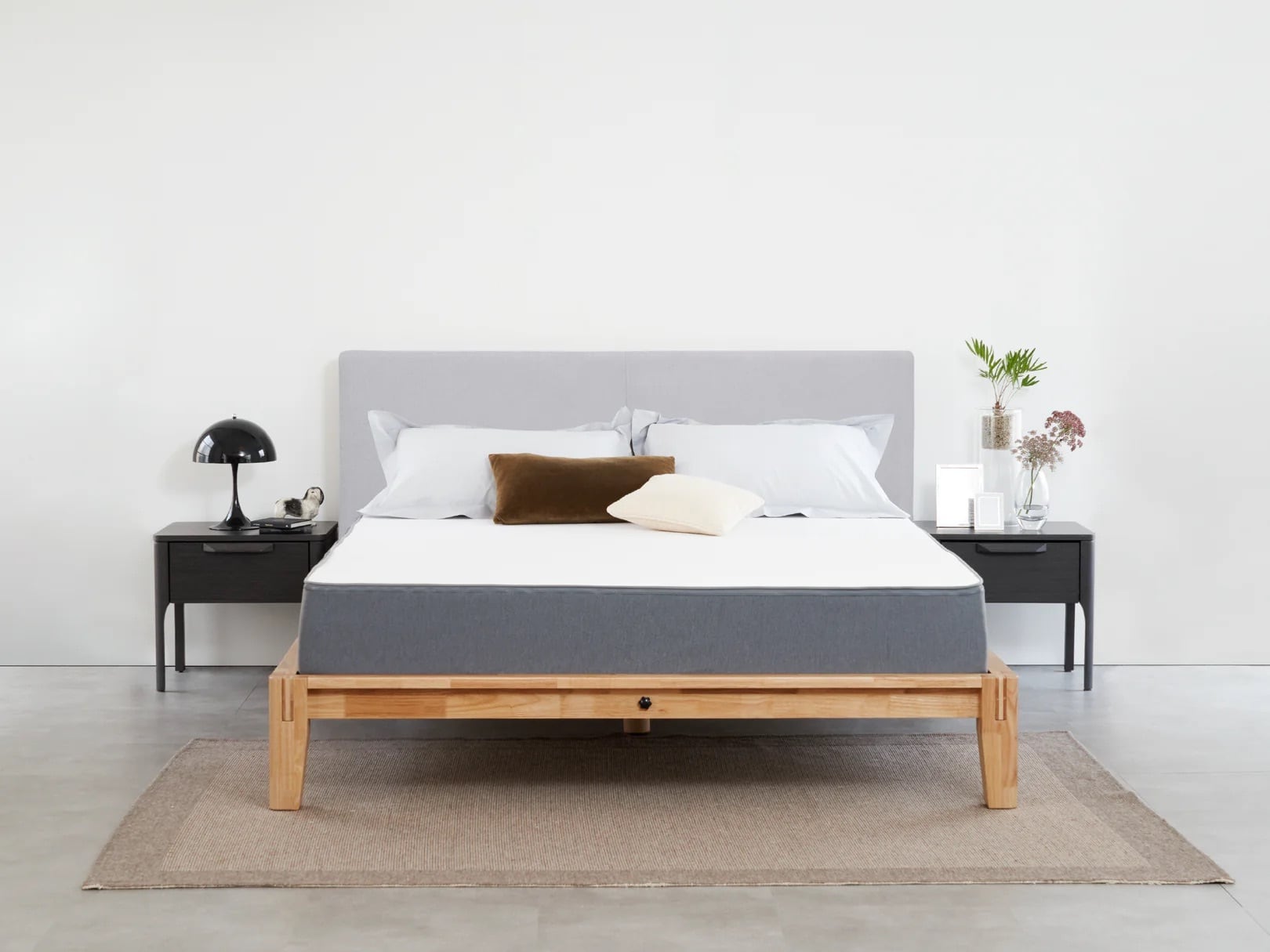 グーグーベッドフレームセット ダブル(カラー:ナチュラル ヘッドボード:ライトグレー) gugu BED FRAME SET DOUBLE (Color: Natural, Headboard: Light Grey)